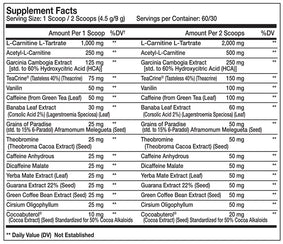 Green Tea Extract: Enhances thermogenesis, metabolism, and fat oxidation resulting in greater fat burning during exercise and while at rest.