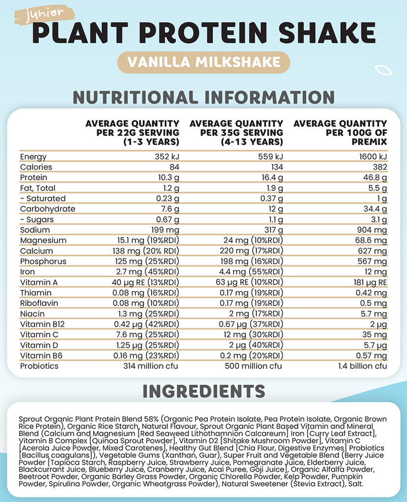 Junior Plant Protein contains 10g of complete plant protein from pea protein isolate and brown rice protein plus a vitamin...Read More