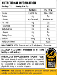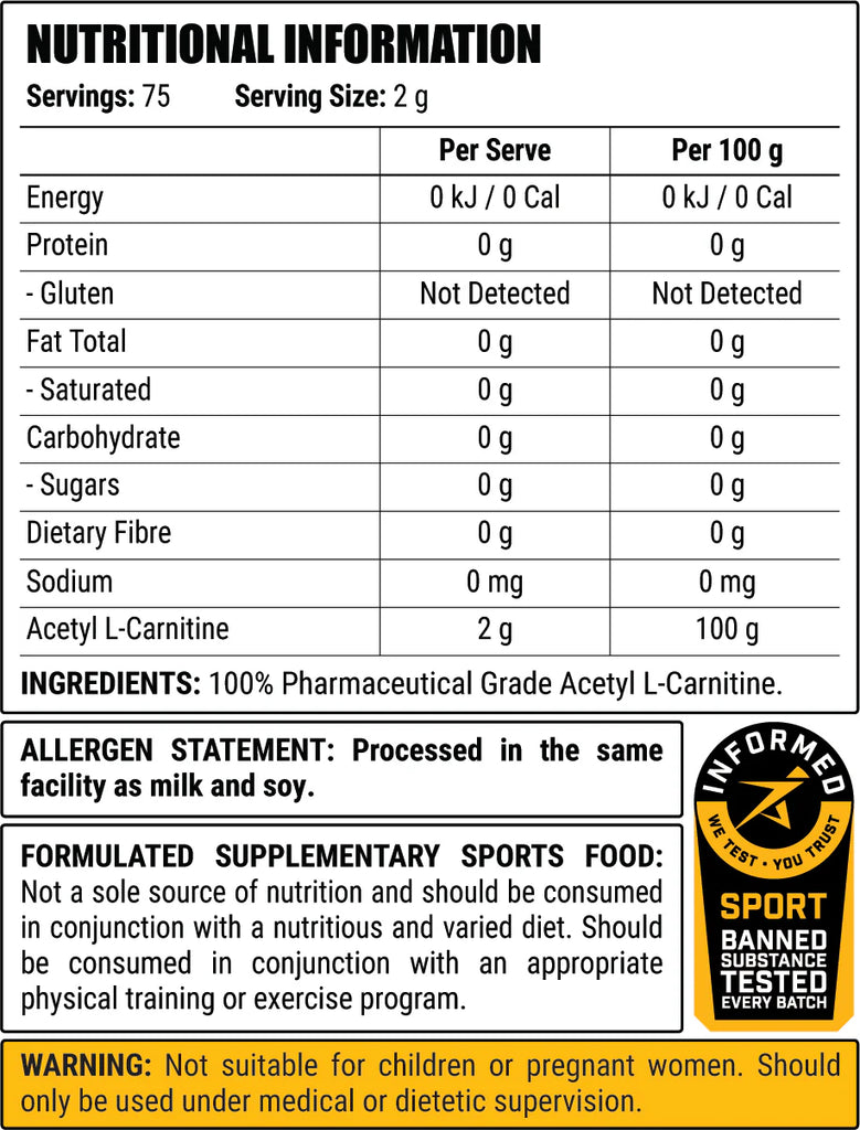 Designed for everyday simplicity, Faction Labs Acetyl L-Carnitine by Faction Labs is a clean, unflavoured powder that fits seamlessly into any supplement routine. It mixes easily with water, juice, or your favourite pre-workout, making it a convenient option for busy, active lifestyles.