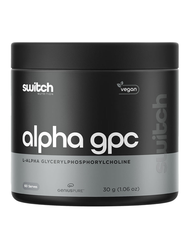 Unlock enhanced cognitive support with Alpha GPC by Switch Nutrition, featuring the exclusive GeniusPure™ blend. This trademarked formulation utilises a highly bioavailable version of choline to provide potentially better quality and more stable Alpha GPC, enabling easier passage through the blood-brain barrier. Whether you're tackling a challenging work project, conducting research, or gearing up for an intense workout, Alpha GPC may offer the nootropic qualities you need for heightened determination and mental clarity. Elevate your workouts and cognitive function with Alpha GPC by Switch Nutrition.