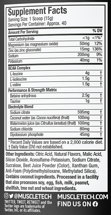 Take your fitness and training to the next level with this muscle and performance-enhancing formula from MuscleTech. Packed with critical BCAAs and clinically-researched doses of leucine and taurine, this amino acid formula is designed to support rapid muscle recovery, enhanced endurance, performance and strength gains, with essential electrolytes to help replace what you lose throughout your workout - plus, it tastes great!
