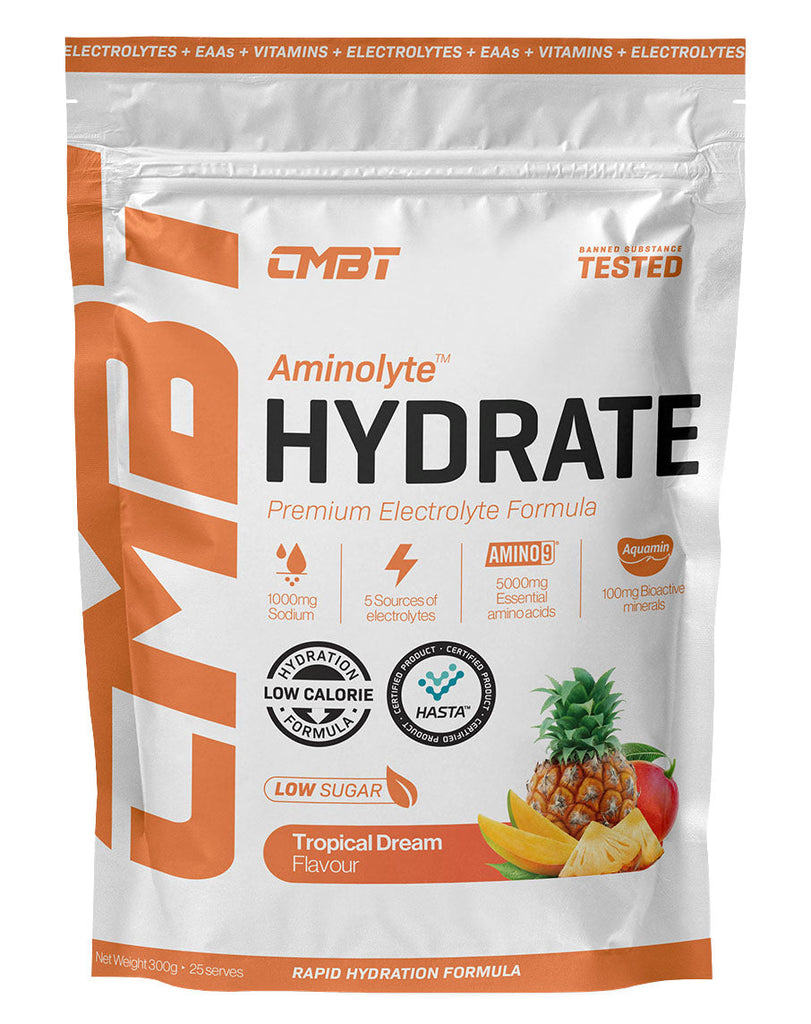 Fuel your body with Aminolyte Hydrate Powder by CMBT, the ultimate hydration and recovery solution for athletes and active individuals.