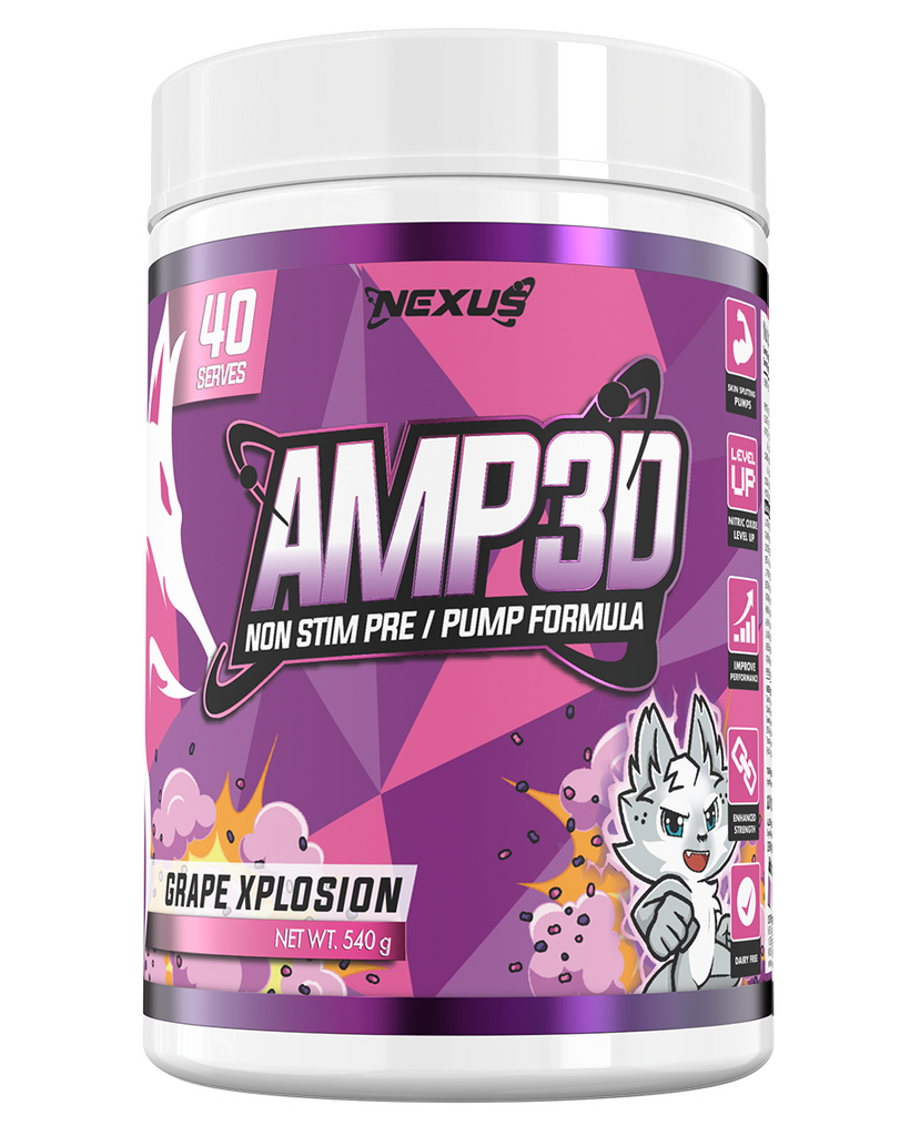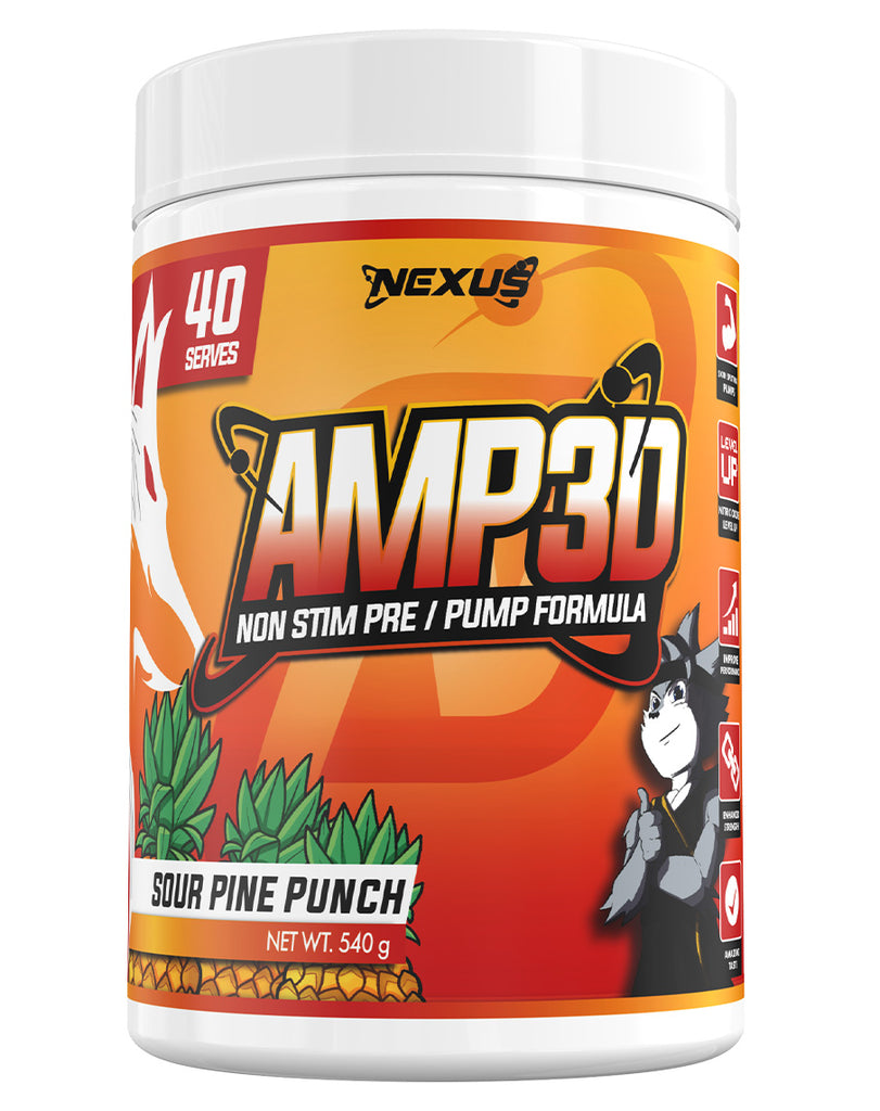 Train harder and stay focused with AMP3D by Nexus Sports Nutrition, a powerful non-stimulant pre-workout and pump formula built for serious performance. Featuring 13 carefully selected ingredients, AMP3D is designed to support muscle hydration, clean mental clarity, and mood elevation — all without the use of stimulants. Whether you're training during the day or late into the evening, this versatile supplement helps keep your sessions productive and consistent without disrupting your sleep or causing post-workout crashes.
