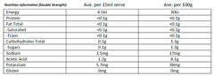 Apple Cider Vinegar contains pectin, trace minerals, potassium, beneficial bacteria and enzymes. Commercial apple cider vinegar is filtered and pasteurised which destroys any enzymes present.