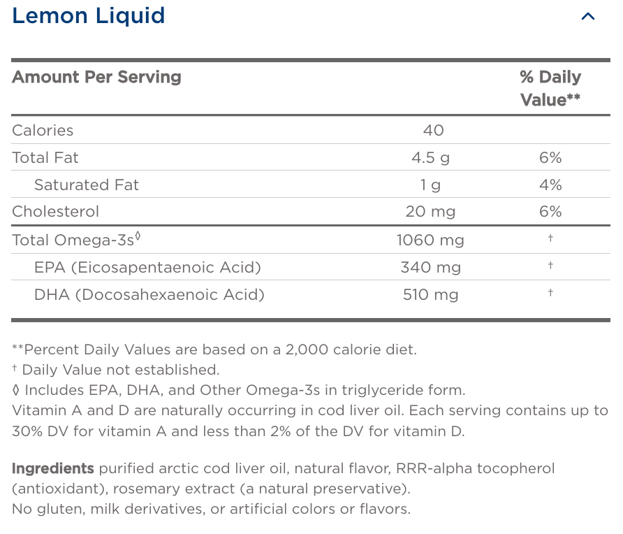 Arctic cod (Skrei) contains the highest levels of DHA, vitamin A, and vitamin D among cod species. Each teaspoon provides approximately 890 mg of essential omega-3 fatty acids, EPA and DHA. Our patented, flavored Arctic Cod Liver Oil liquids are perfect for those who prefer not to swallow pills, and they taste so good you'll forget they're from fish.