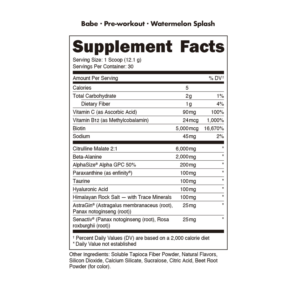 Not just focused on physical power, Babe Pre Workout includes nootropics that support mental clarity and stamina, helping you stay in the zone and push your limits. With beta-alanine to help reduce muscle soreness and boost endurance, along with essential nutrients like biotin and Vitamin B12, this pre-workout provides benefits that extend beyond the gym, supporting overall wellness.