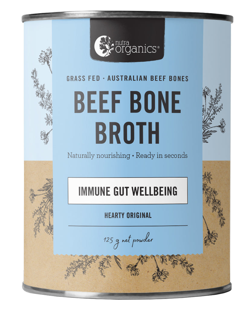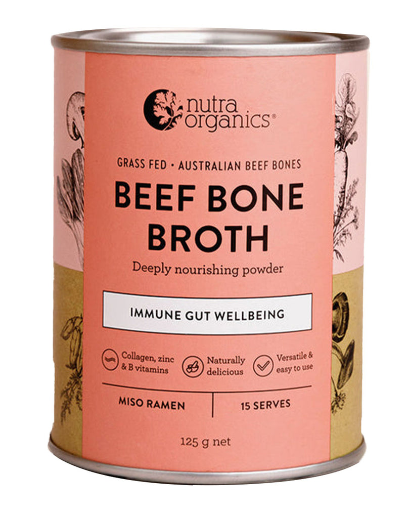 Made from grass-fed beef bones, Beef Bone Broth by Nutra Organics is packed with antioxidants and vitamins that promote healing from the inside out. Bone broth is rich in gelatine, which is essential for connective tissue function, helping to heal and seal your gut. A healthy gut is crucial for your overall health and well-being, as it directly impacts your immune system, mood, and skin conditions.