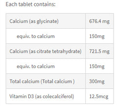 • Highly bioavailable sources of organic calcium to help maintain bone mineralisation, density and strength and aid in the prevention and treatment of osteoporosis.