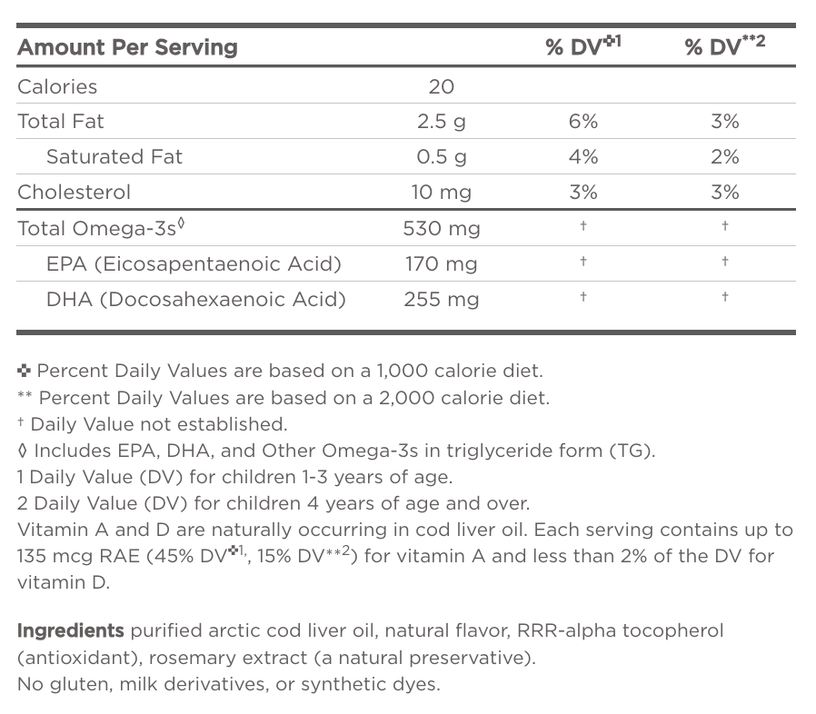 Directions: Take one-half teaspoon daily with food or as directed by your health care professional or pharmacist. Consult a physician about the consumption method for children 8 months and under.