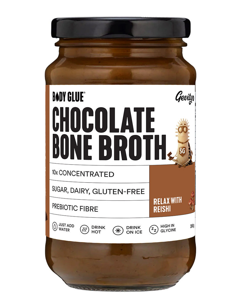 Chocolate Bone Broth (Relax) by Gevity RX is the perfect way to unwind and nourish your body at the same time. Crafted with Gevity RX’s signature Body Glue collagen base, calming Reishi mushroom, and smooth coconut milk powder, this rich, chocolatey blend is made for relaxation and gut support. It’s creamy, sugar-free, and ready in seconds — just add hot water and enjoy a soothing moment anytime you need it.