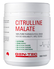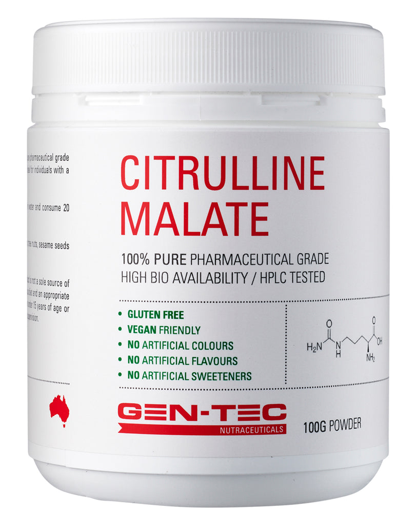 GEN-TEC NUTRACEUTICALS source, blend and package 100% pure pharmaceutical grade CITRULLINE MALATE powder. CITRULLINE MALATE supplementation is ideal for individuals with a goal of increasing endogenous Nitric Oxide levels.
