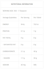 INGREDIENTS: Barrel-aged coconut blossom nectar, sun-dried mineral-rich sea salt.
