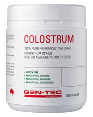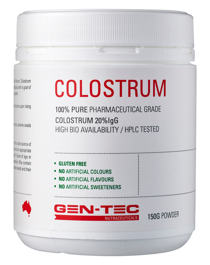 GEN-TEC NUTRACEUTICALS source, blend and package 100% Pure Bovine COLOSTRUM powder containing 20%IgG. COLOSTRUM supplementation is ideal for individuals with a goal of improving gut health, intestinal flora and supporting a healthy immune system.