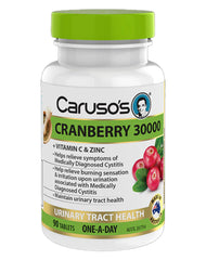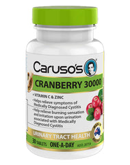 Caruso’s Cranberry 30000 has been carefully blended to offer a high-potency cranberry supplement with the addition of antioxidant nutrients, vitamin C, and zinc. This blend will help with the maintenance of urinary tract health and support healthy immune system function.