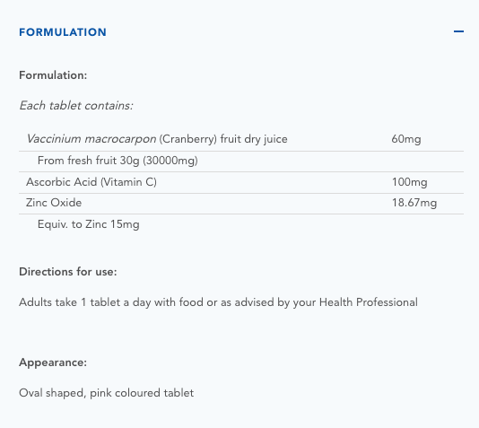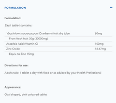 This formula can help to reduce the occurrence and symptoms of medically diagnosed cystitis and can help to relieve symptoms such as the burning and irritation felt upon urination during episodes of medically diagnosed cystitis. Cranberry 30000 also helps to support the health and function of the urinary tract.