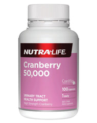 Nutra-Life Cranberry 50,000 is a high-strength formula specifically developed to support urinary tract health and relieve the discomfort associated with cystitis. Featuring Cran-Max®, a clinically researched cranberry extract, this supplement helps reduce the frequency of harmful urinary bacteria and may ease symptoms such as pain, burning, and urinary urgency.