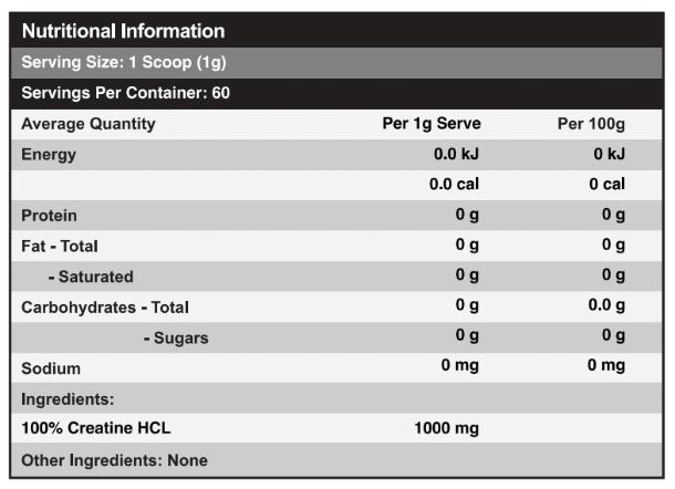 - Pure creatine hydrochloride for efficient absorption