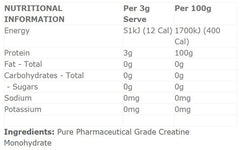 INGREDIENTS: Creapure® Micronised Creatine Monohydrate powder.