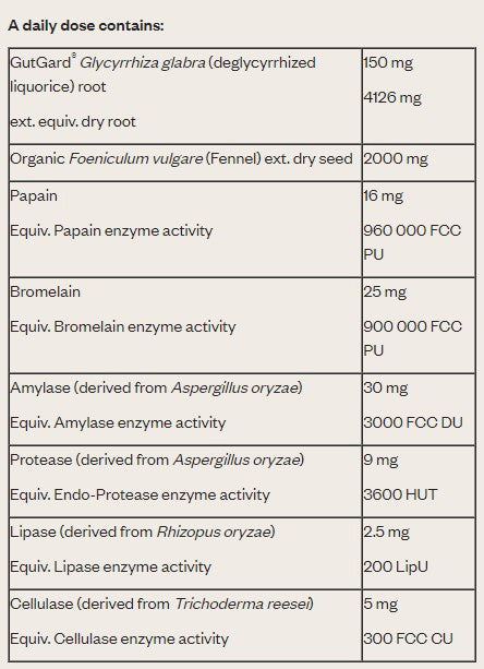 • Assist with the digestion of protein, carbohydrates, fat and plant fibres