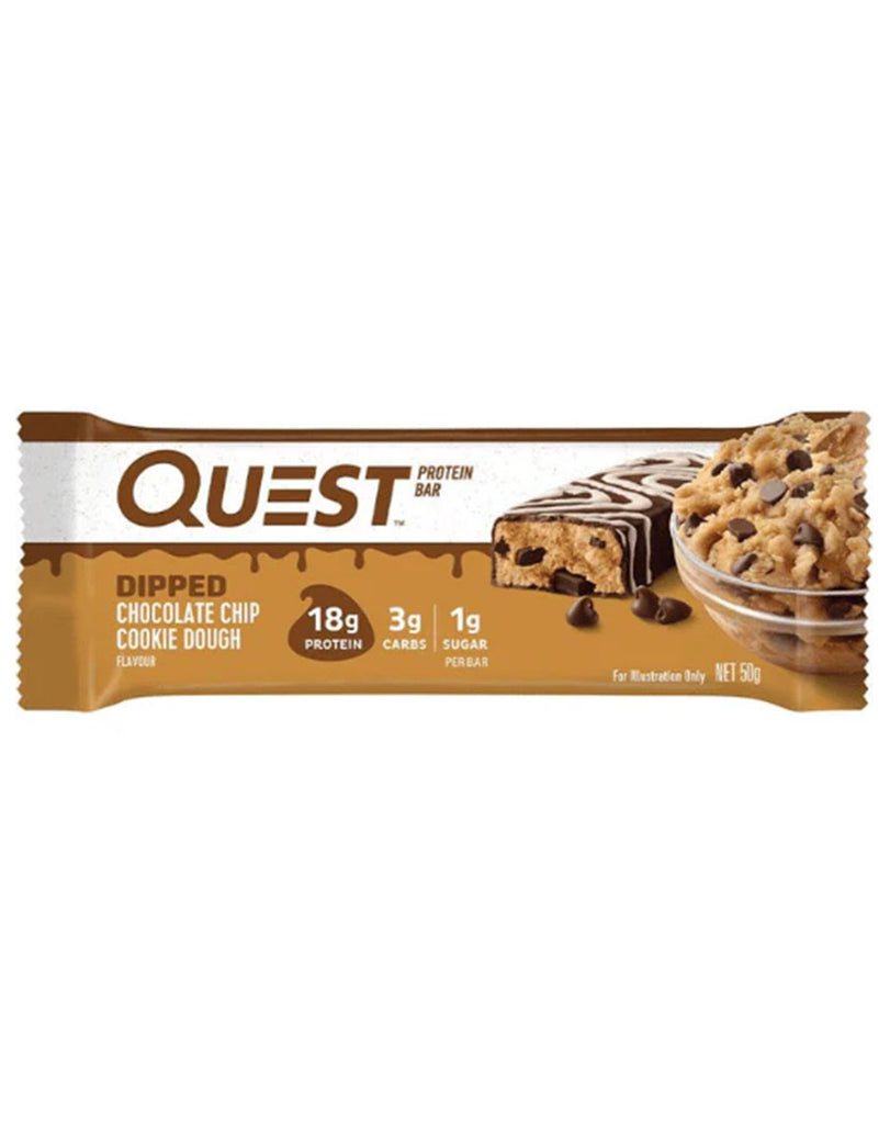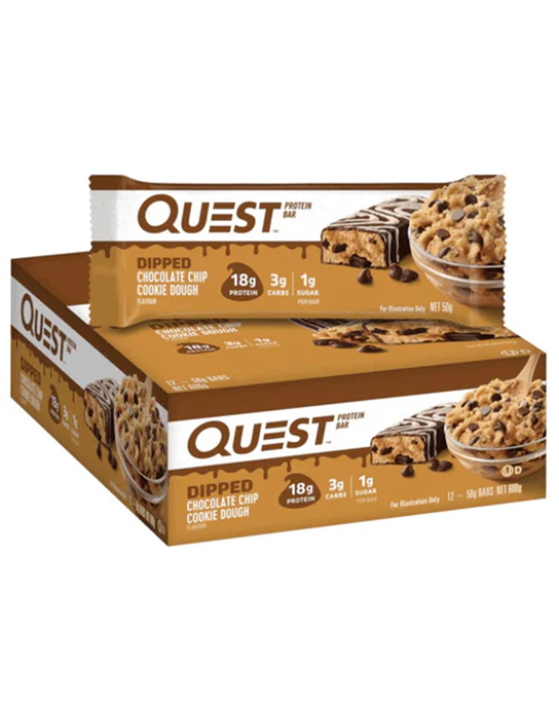 Say hello to the new protein bar from Quest Nutrition. The Dipped Protein Bar is packed with 18g of protein and only 3g of carbs per serving. Forget boring protein bars and enjoy this protein-packed bar – guilt-free! Stay on track with your goals with a blend of Milk Protein Isolate and Whey Protein Isolate for a high-quality protein boost and only 3g of carbs and 1g of sugar.