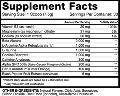 Mix one scoop with 6-10 oz of cold water and consume 15-30 minutes before training. Do not exceed more than one scoop.