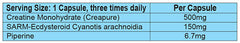 Creatine Monohydrate (Creapure), Androgen Receptor Complete SARM-Ecdysteroid Cyanotis arachnoidia, Piperine.