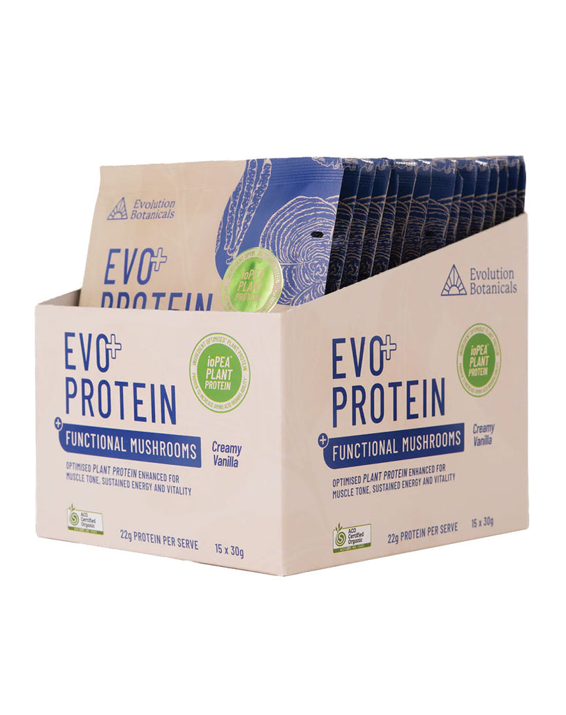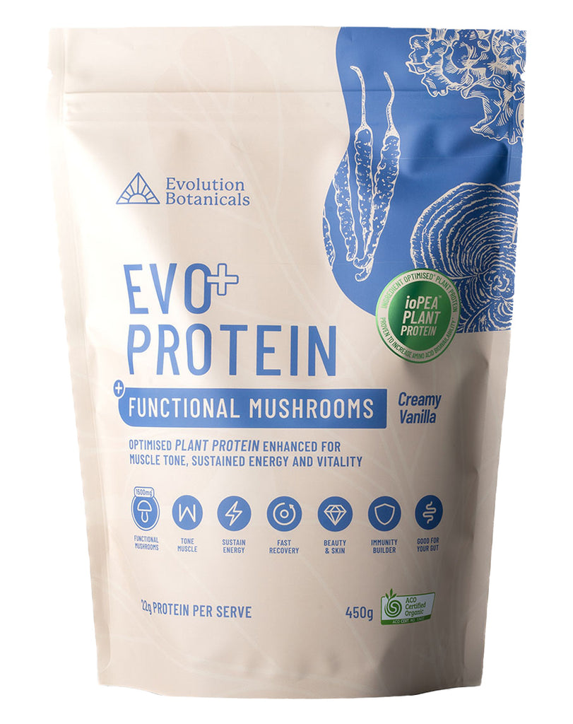 Experience Evo+ Protein by Evolution Botanicals, an Australian made protein blend that not only offers a vitality boost for a radiant complexion but also includes functional mushrooms for added benefits. Each serving provides 22.4g of clean vegan protein from certified organic Canadian golden pea and hydrolyzed rice sources, delivering a diverse and complete amino acid profile. Evo+ Protein is gentle on the stomach, free from gluten, dairy, soy and GMOs, making it the perfect alternative for those with sensitive stomachs. Its formulation is enriched with plant-based digestive enzymes, dietary fibre and heat-stable probiotics for easy digestion. Whether you prefer it in a smoothie or mixed into a protein-packed snack, Evo+ Protein is the ideal choice for all-around support.