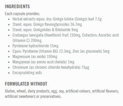 This formula is a complex of Ginkgo, Hawthorn and supporting vitamin and mineral co-factors to support peripheral circulation as well...Read More