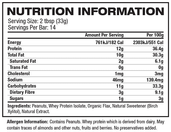 Created as the perfect snack/meal replacement, 1 serving of this power packed pb contains all the protein, essential fats and just the right amount of carbs for anyone serious about unleashing their health and fitness potential.