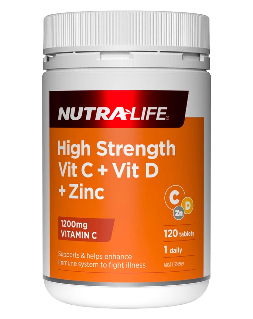 Take control of your immune health with High Strength Vitamin C + Vit D + Zinc by Nutra-Life – a simple, effective way to support your daily wellbeing.