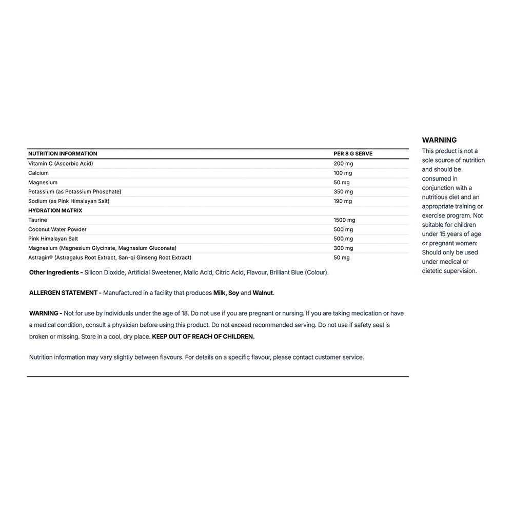 Hydrate by Inspired Nutraceuticals provides essential support for intense workouts, ensuring your personal best is always within reach. Packed with goodies like electrolytes from coconut water powder, Hydrate replenishes what you sweat out - to support performance and endurance. Additionally, its amino acid blend supports muscle recovery, vital for achieving optimal results. With Hydrate, you have the tools needed to push yourself further and achieve your fitness goals.