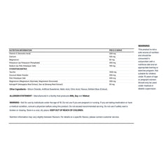 Warning: This product is not a sole source of nutrition and should be consumed in conjunction with a nutritious diet and an appropriate training or exercise program. Not suitable for children under 15 years of age or pregnant women: Should only be used under medical or dietetic supervision.