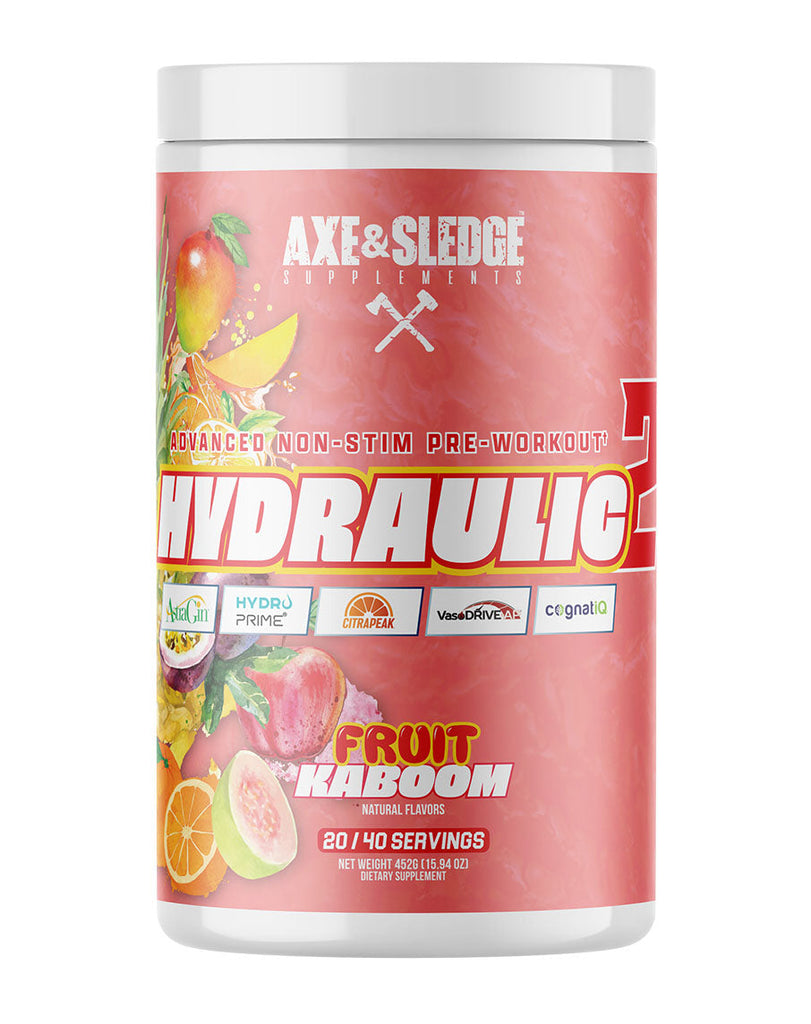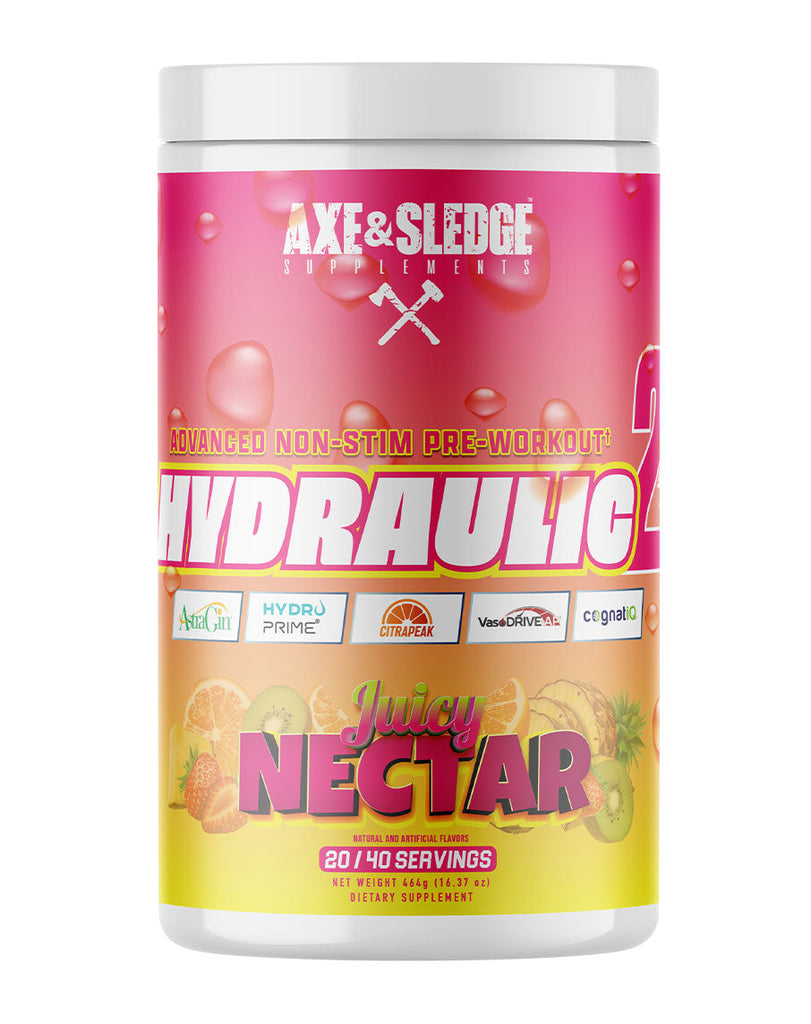 Axe & Sledge Hydraulic is a high-performance, stimulant-free pre-workout formulated for athletes and lifters who want to train hard without the use of caffeine or stimulants. Ideal for late-night sessions or those who prefer a stim-free option, Hydraulic supports pump, endurance, hydration, and mental drive so you can stay focused and fuelled throughout your workouts.