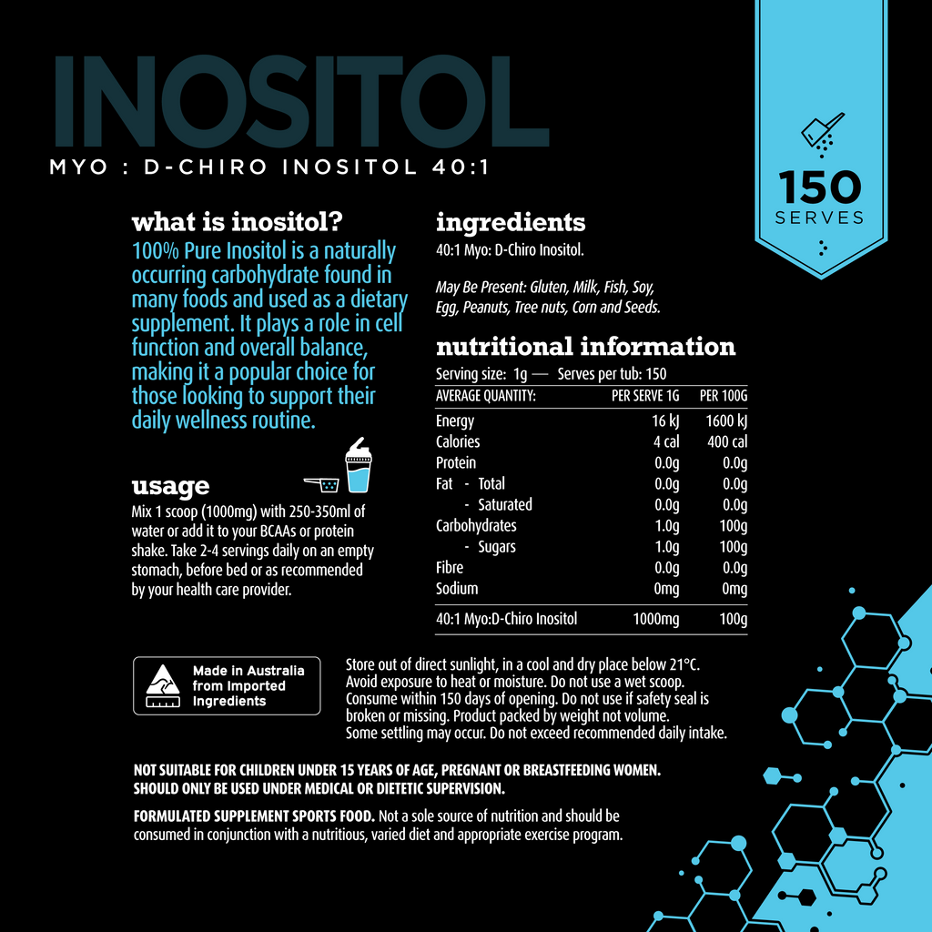 This fast-dissolving formula allows for flexible, easy dosing—perfect for mixing into water or your favourite drink. Whether you're looking to support emotional wellbeing, cycle regularity, or glucose control, Inositol offers a clean, effective solution.