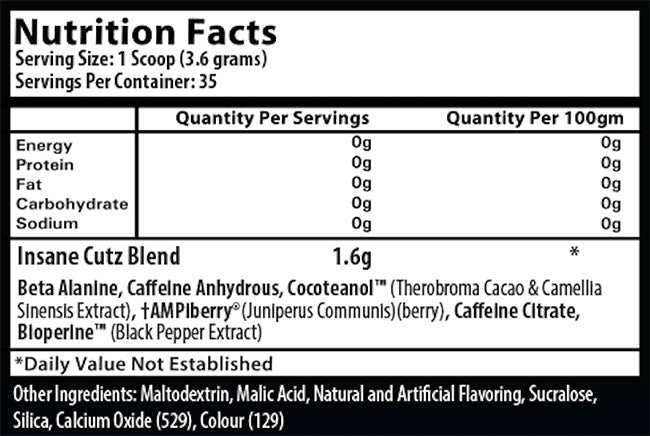 Each serving of Insane Cutz by Insane Labz has a blend of:
