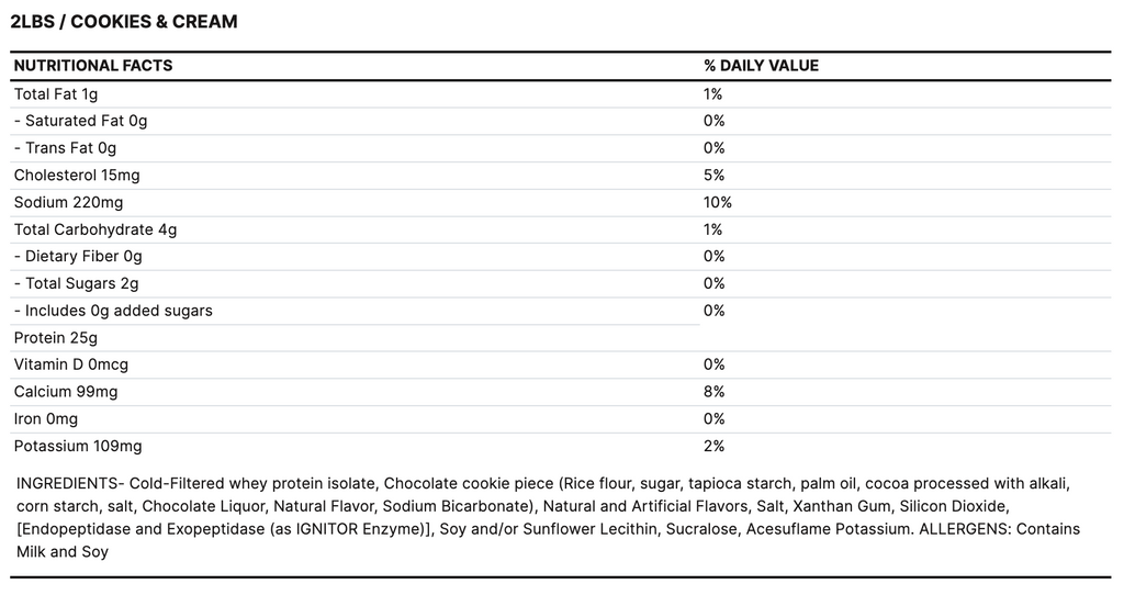 • Added Ignitor Digestive Enzymes for an improved whey isolate protein powder