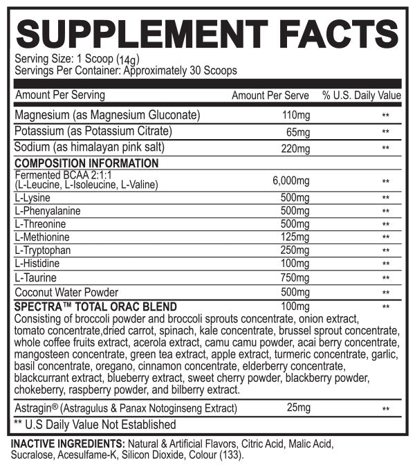 • 6000 mg of BCAA’s, which will help to provide the muscles with essential nutrients that will help with the recovery process.