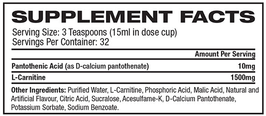 Each serve (2 teaspoons/15ml) of L-Carnitine (Liquid) by German American Technologies has: