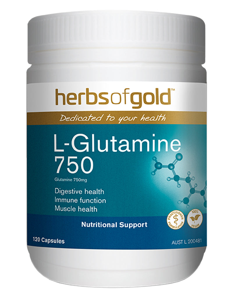 Herbs of Gold’s L-Glutamine 750 is a high-strength L-glutamine supplement which provides valuable boosts to digestive and immune health, as well as aiding muscle recovery – all within a miniature vegetable capsule! L-Glutamine, the naturally occurring form of the amino acid glutamine, is an essential component of the antioxidant glutathione and it provides a vital source of energy for many tissues within your body.