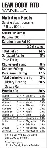 Each serving of Lean Body by Labrada provides: