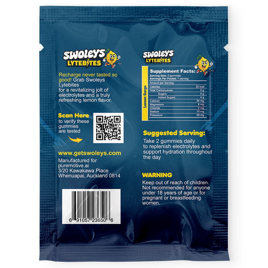 LyteBites Electrolyte Gummies by Swoleys are designed for both daily hydration and use during physical activity. They’re suitable for gym sessions, travel, outdoor adventures, or maintaining hydration at work or home.
