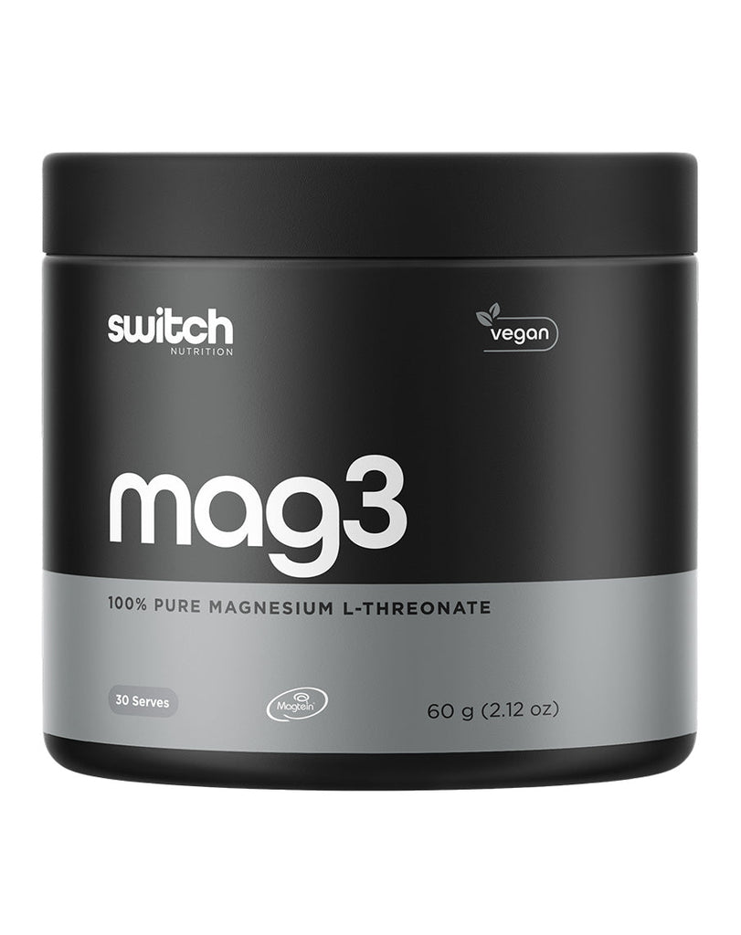 Magnesium is a vital mineral involved in over 600 bodily functions every day, from energy production to muscle health. MAG3 (Powder) by Switch Nutrition features Magnesium L-Threonate, a cutting-edge, highly absorbable form of magnesium.