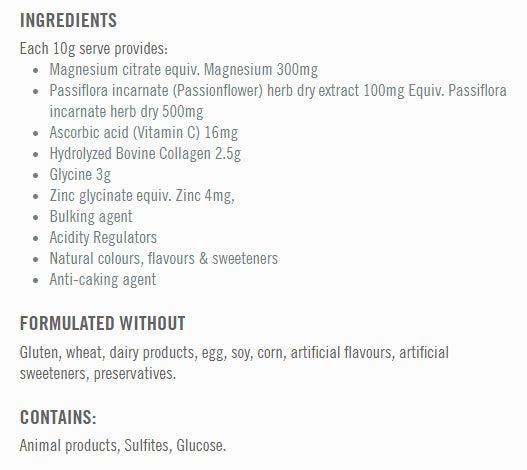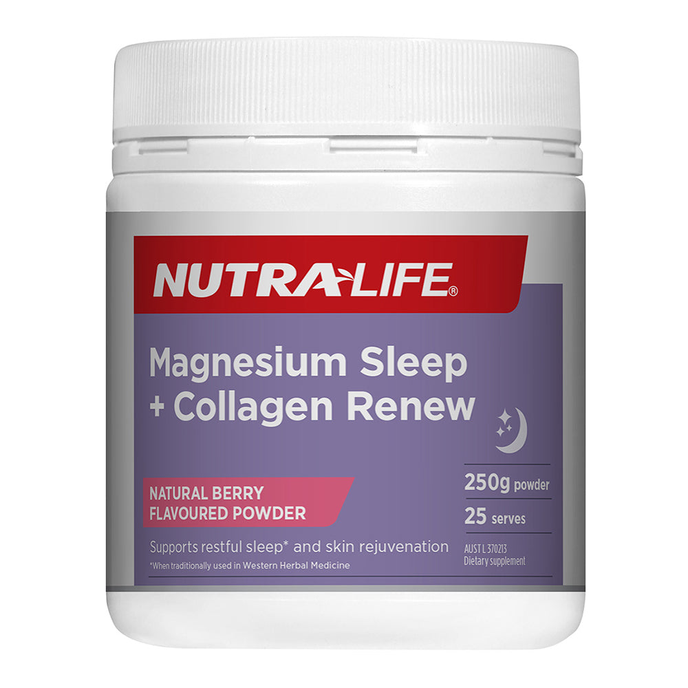 Unwind at the end of the day with Magnesium Sleep + Collagen Renew by NutraLife, a high-strength, naturally flavoured powder designed to support restful sleep and skin renewal. With a powerful combination of magnesium, collagen peptides, passionflower, zinc, and vitamin C, this formula helps you rest better while nourishing your skin from within.