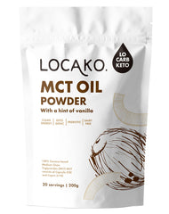 Locako’s MCT Oil Powder, 100% from coconuts, consists of caprylic (C8) and Capric (C10). Our MCT Oil Powder is dairy free, vegan, with no nasty fillers, and perfect for the ketogenic and low carb diets.