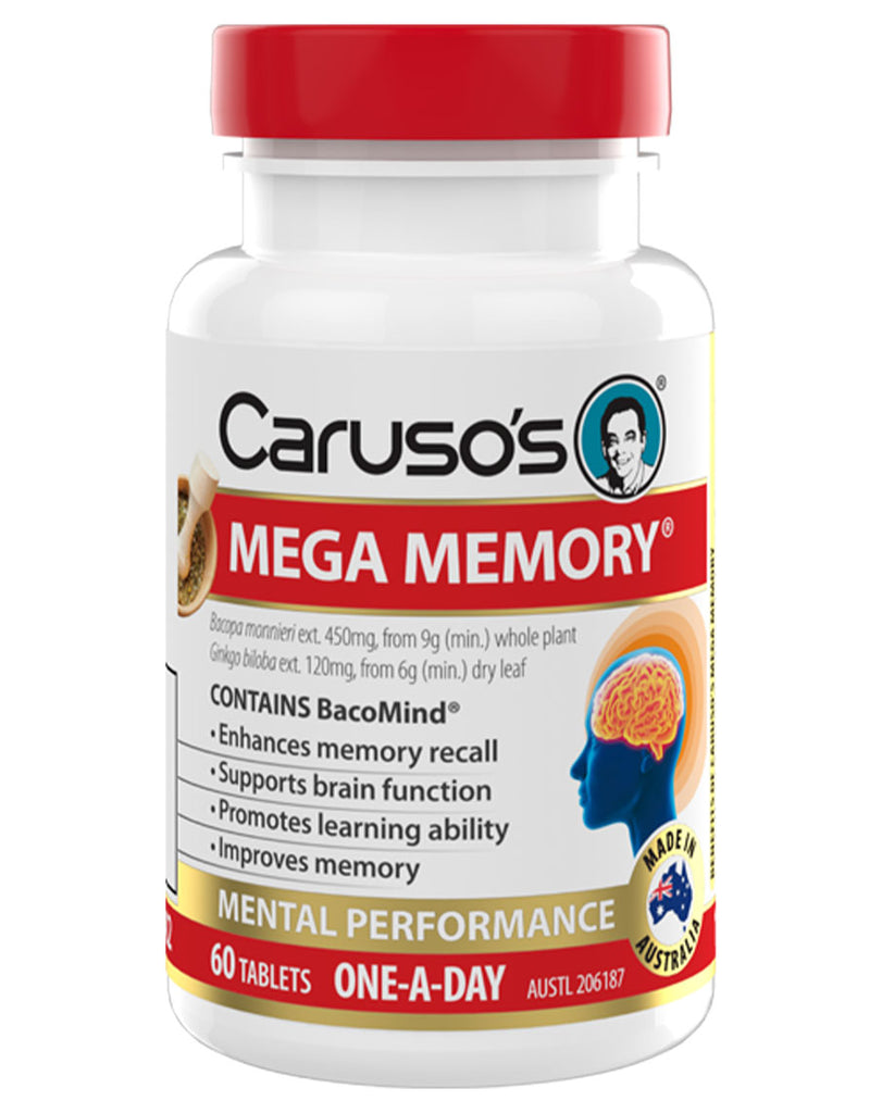 Support your memory and improve cognitive performance with Mega Memory by Caruso's Natural Health. These one-a-day tablets seamlessly integrate into your morning routine, offering a powerful blend of standardised herbal extracts, including Bacopa monnieri (Brahmi) and Ginkgo biloba (Ginkgo). With a harmonious mix of modern and Ayurvedic medicine, Mega Memory supports mental concentration, information processing and general wellbeing. Additionally, it enhances learning ability, cognitive performance and memory. The formulation extends its benefits to maintaining healthy blood circulation and nervous system health, providing comprehensive support for your cognitive function.