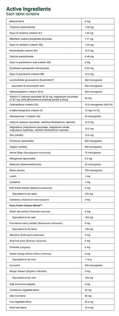 Men’s Multivitamin contains vitamin and mineral complexes important for men, including calcium and magnesium, vitamin D3 and K2, easily absorbed active forms of folate, vitamin B6 and B12, zinc and selenium. Enzymes, antioxidants, and other phytonutrients are also included for energy and vitality, making this formula ideal for any men looking for a raw-based multi packed full of organic ingredients.