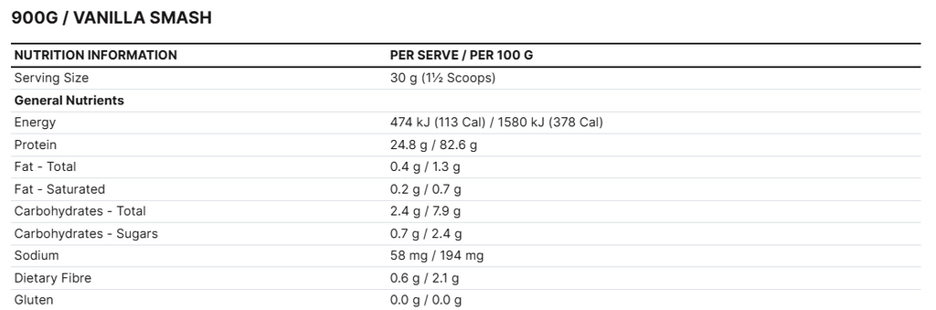 Each serve contains approximately 25g of ultra-pure Whey Protein Isolate to help support muscle repair and recovery.