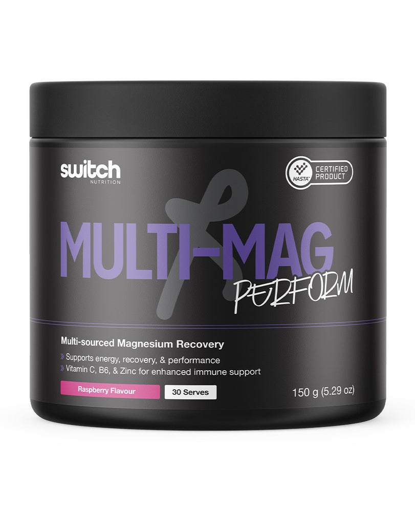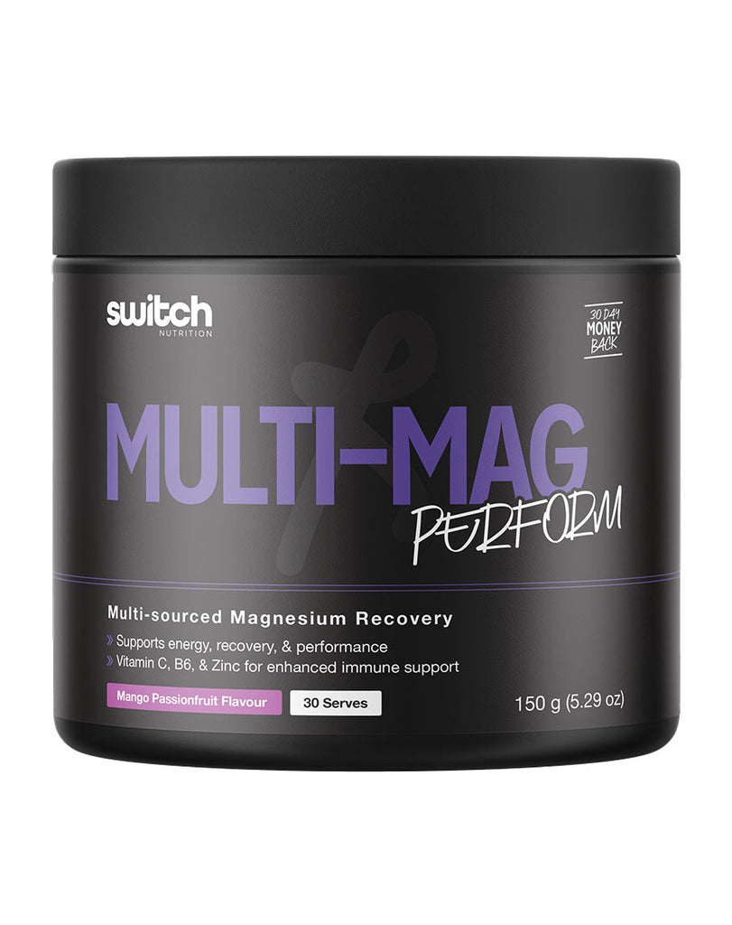 Recover better, move freer, and feel more balanced every day with Multi-Mag Perform by Switch Nutrition – a premium magnesium recovery formula crafted to support whole-body wellness. Delivering 320mg of elemental magnesium from six highly bioavailable sources, this daily supplement helps support muscle relaxation, reduce fatigue, and promote energy production. It’s also enhanced with vitamin B6, vitamin C, and zinc to support absorption and contribute to overall wellbeing.