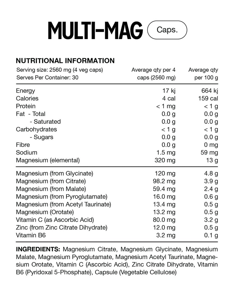 Multi-Mag Perform features six distinct forms of magnesium for broad-spectrum absorption, alongside co-factors such as B6 and zinc to optimise utilisation.