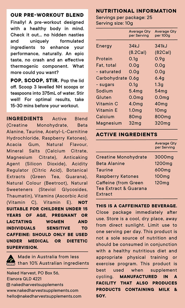 Take your workouts to the next level with Natural Pre Workout by Naked Harvest, a clean and effective energy booster designed to support your training. Made with all-natural, vegan-friendly ingredients, this pre workout is free from artificial nasties, synthetic stimulants, and refined sugars—so you can fuel your body with confidence.
